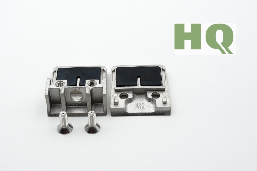 Edelstahl Korn 240 matt, mit optionaler Sicherungsplatte, Maße: 46 x 45 mm mit flachem Anschluss, inklusive EPDM Einlagen, mit AbZ Z-70.5-248 geprüft nach DIN 18008-4(Kategorie C1) |