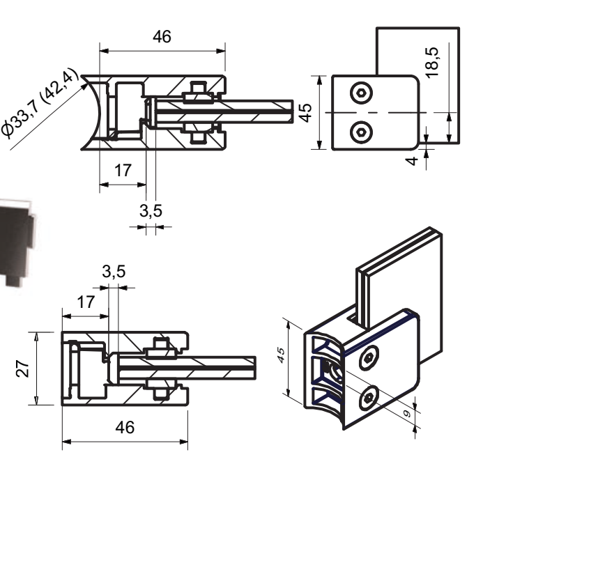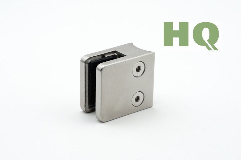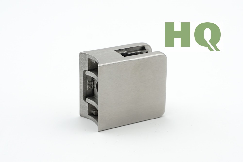 Glasklemme eckig, Edelstahl A4, Klemmtyp 6, Rohranschluss 8mm / Rohr Ø33,7 mm