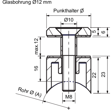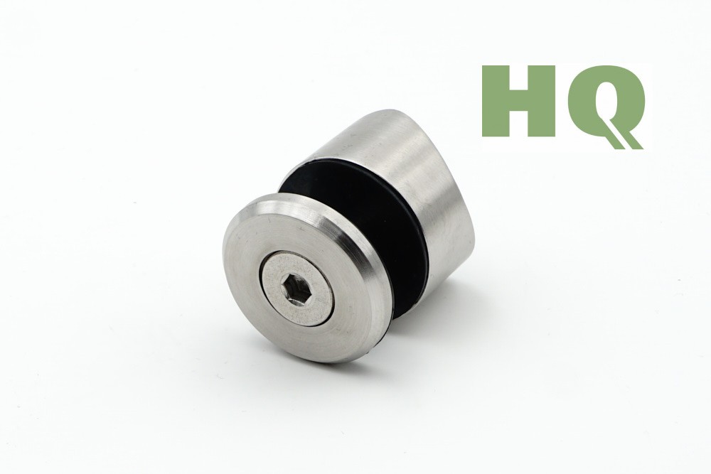 Edelstahl 1.4301 fein gedreht matt A2, Maße: Ø 35 mm; mit Schraube M8 x 40 mm, Glasstärke bis 12mm |