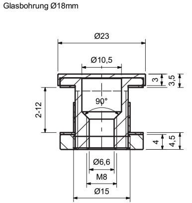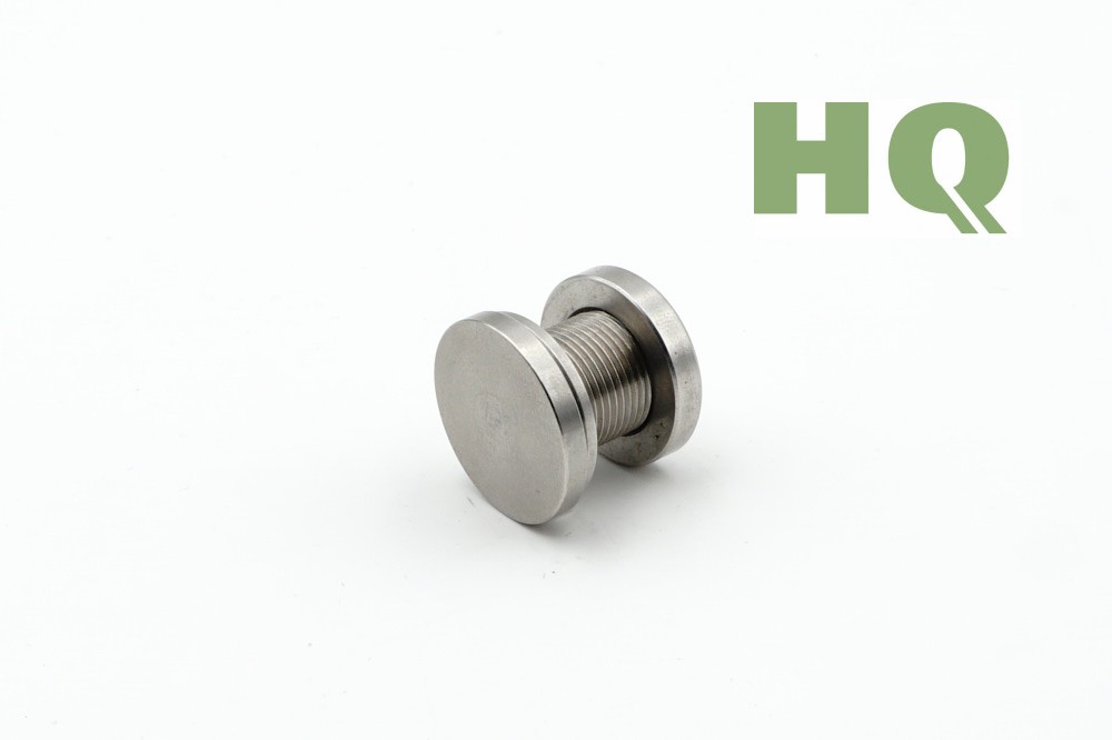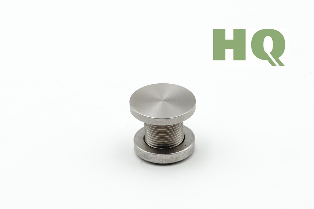 Edelstahl fein gedreht matt A2, mit flachem Befestigungskopf, Plattenstärke 2-12 mm, inklusive KU-Scheiben und Schlauchstück, Größe Ø 23 mm, ohne Befestigungsschraube |