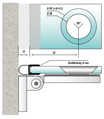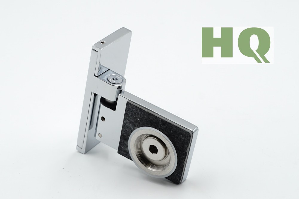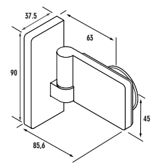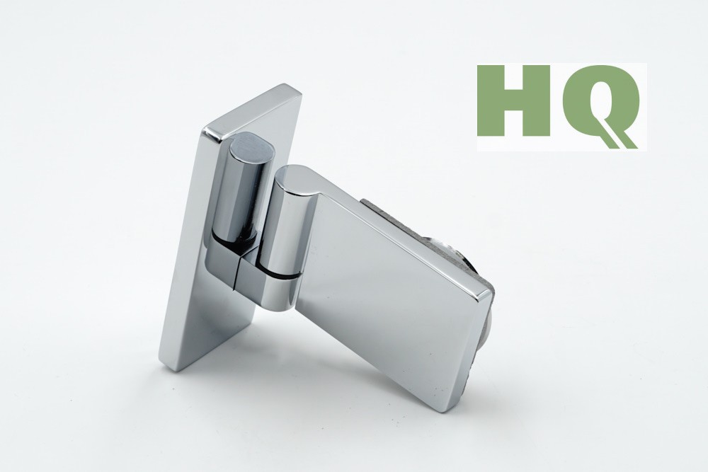 Scharnier Glas-Wand 90° mit Hebe-Senk Mechanismus; DIN links außen öffnend; Nullage einstellbar; Abhebung: 4 mm; Mit Aushebelschutz; Flächenbündige Glasbefestigung mit verdeckter Verschraubung; Wandverschraubung im Langloch mit Abdeckung; Glasart: 8 mm ESG; Tragkraft: 50 kg bei zwei Bändern; Türbreite max: 1000 mm; Abhebung: 4 mm; Material: Messing massiv; Verwendung: links; Verstellbarkeit im Konus: ± 2.5 mm; Oberfläche: glanzverchromt |