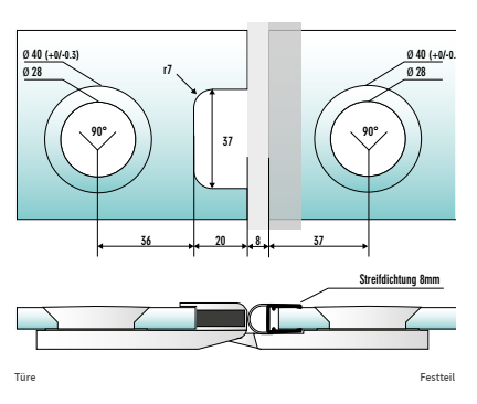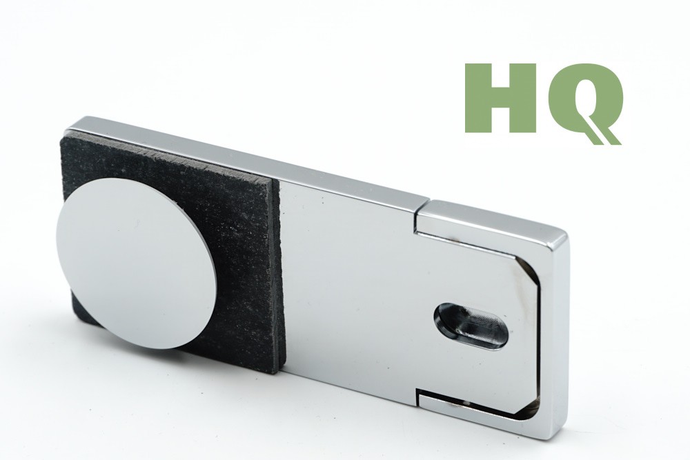 Pendelscharnier Glas-Glas 180°; Flächenbündige Glasbefestigung mit verdeckten Verschraubungen; Glasart: 8 mm ESG; Tragkraft: 40 kg bei zwei Bändern; Türbreite max: 900 mm; Material: Messing massiv; Verwendung: links/rechts; Verstellbarkeit im Konus: ± 2.5 mm; Oberfläche: glanzverchromt |