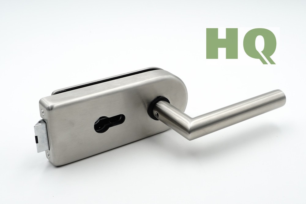 Glastürschlosskasten Venezia; PZ gelocht; incl. Bandpaar und Rahmenteil Holzzarge und Drückerpaar; Edelstahlfarben |